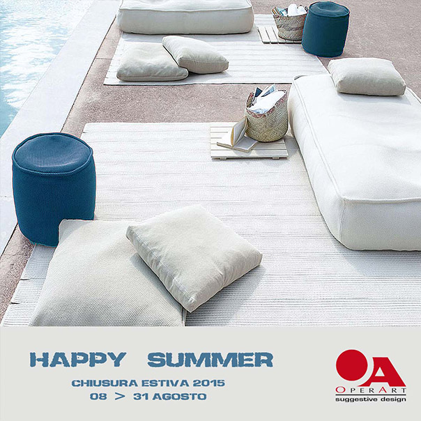 Il nostro show-room resterà chiuso per le ferie estive da sabato 08 agosto a lunedì 31 agosto 2015 (inclusi), vi aspettiamo martedì 1 settembre 2015.