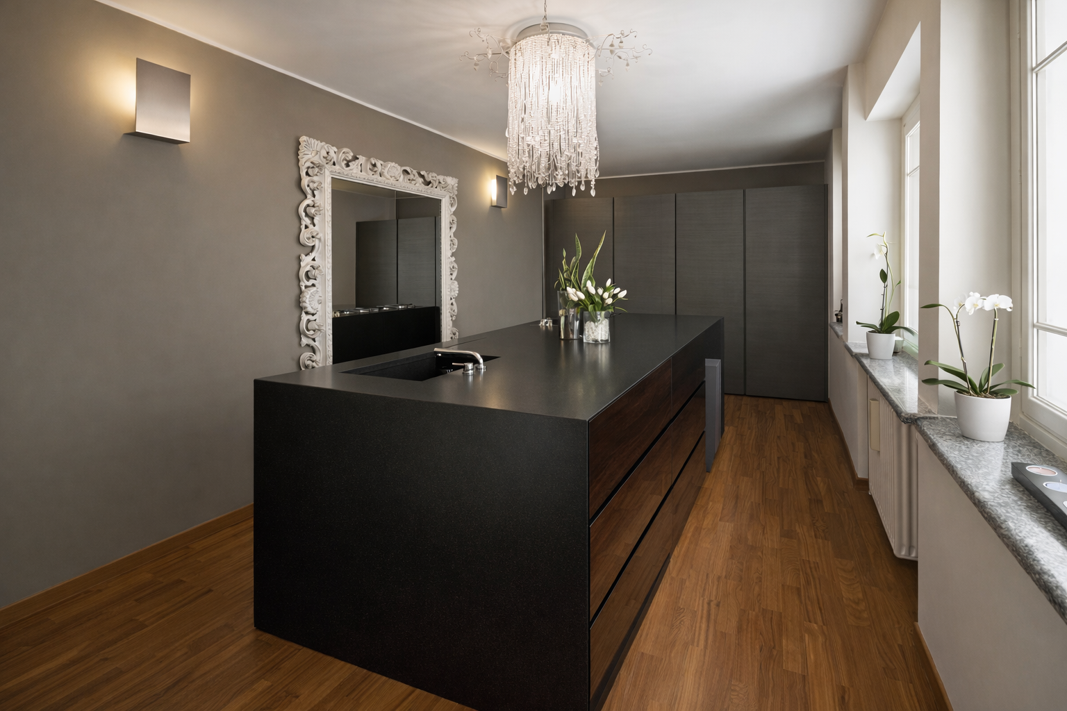 A contrasto con le atmosfere più classiche degli ambienti giorno, la cucina è stata progettata con un linguaggio moderno e funzionale, caratterizzata da linee pulite e soluzioni contemporanee che garantiscono praticità e comfort nell’utilizzo quotidiano.